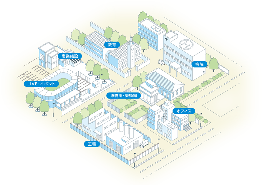 イベントや商業施設だけでなく、オフィスや建物のファザード、内装にも、LEDビジョンやプロジェクションマッピング、デジタルサイネージ等で演出し、建物のブランド価値を向上させ、顧客のエンゲージメントを深める手段として高い評価を受けています。