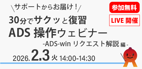 【参加無料/LIVE開催】サポートからお届け!30分でサクッと復習 ADS操作ウェビナー– ADS-winリクエスト解説編 – ADS-…