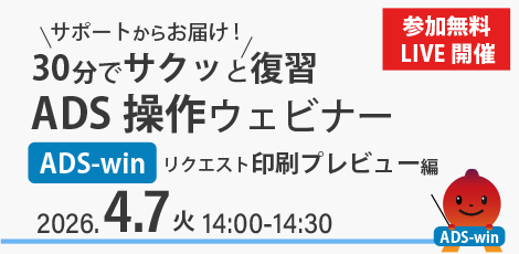 【参加無料/LIVE開催】サポートからお届け!30分でサクッと復習 ADS操作ウェビナー– ADS-winリクエスト解説編[印刷プレビュー] …